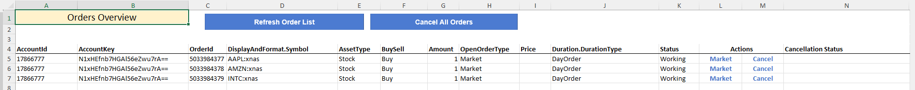 For the single-click manual operations such as converting an order to market from the "Orders" sheet, a similar structure is used as in the previous 2 tutorials: