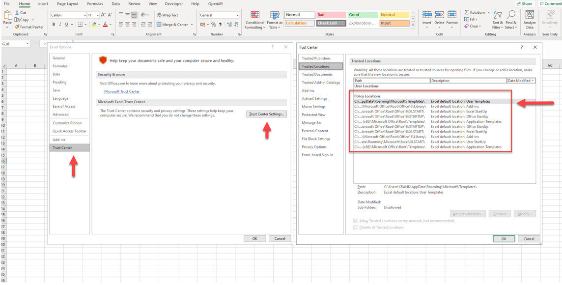- To find the trusted location of you excel. Go to the Trust Center in Excel --> Trust Center Settings --> Trusted Locations