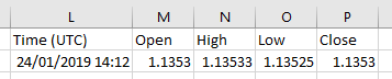 The precheck subroutine performs the usual API calls and error checking that we have implemented in earlier charting tutorials. It also compares the value of the returned timestamp (in cell Data!L2) against the current one (in cell Data!A61). If the value is the same, the last values are updated using the response from the API that is already available on the Data sheet (see image). This vastly reduces the pressure on both the OpenAPI, as we only request a single datapoint unless the current horizon expires, and Excel, because it will recompute the values in row 61 only.