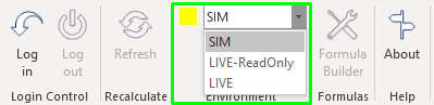 Existing (direct) Saxo Bank clients have access to the LIVE environment in Excel in both ReadOnly and "real" LIVE mode (see image above). The ReadOnly mode exists to allow users to log into a 'safe' environment that is unable to trade for testing purposes. When logged in as ReadOnly, Excel can perform any function except from placing trades (an order can be sent to the OpenAPI, but it will be rejected). This mode is great for testing an app with market data (which does not exist in SIM as of now).