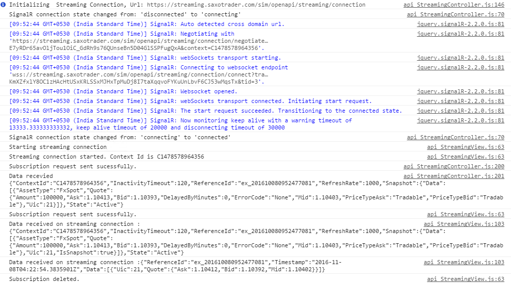 console.info("Initializing Streaming Connection, Url: " + streamingConnectionUrl);