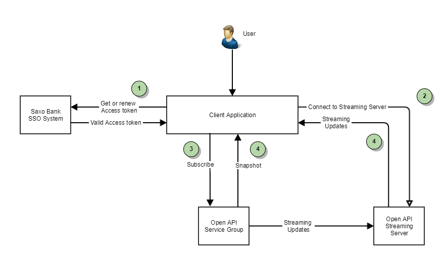 - OpenAPI Streaming server sends streaming updates to the client application.